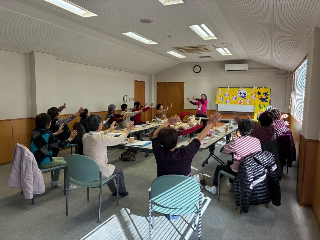 笑いヨガで軽く身体を動かし、その後歓談を楽しみ1年を締めくくりました。